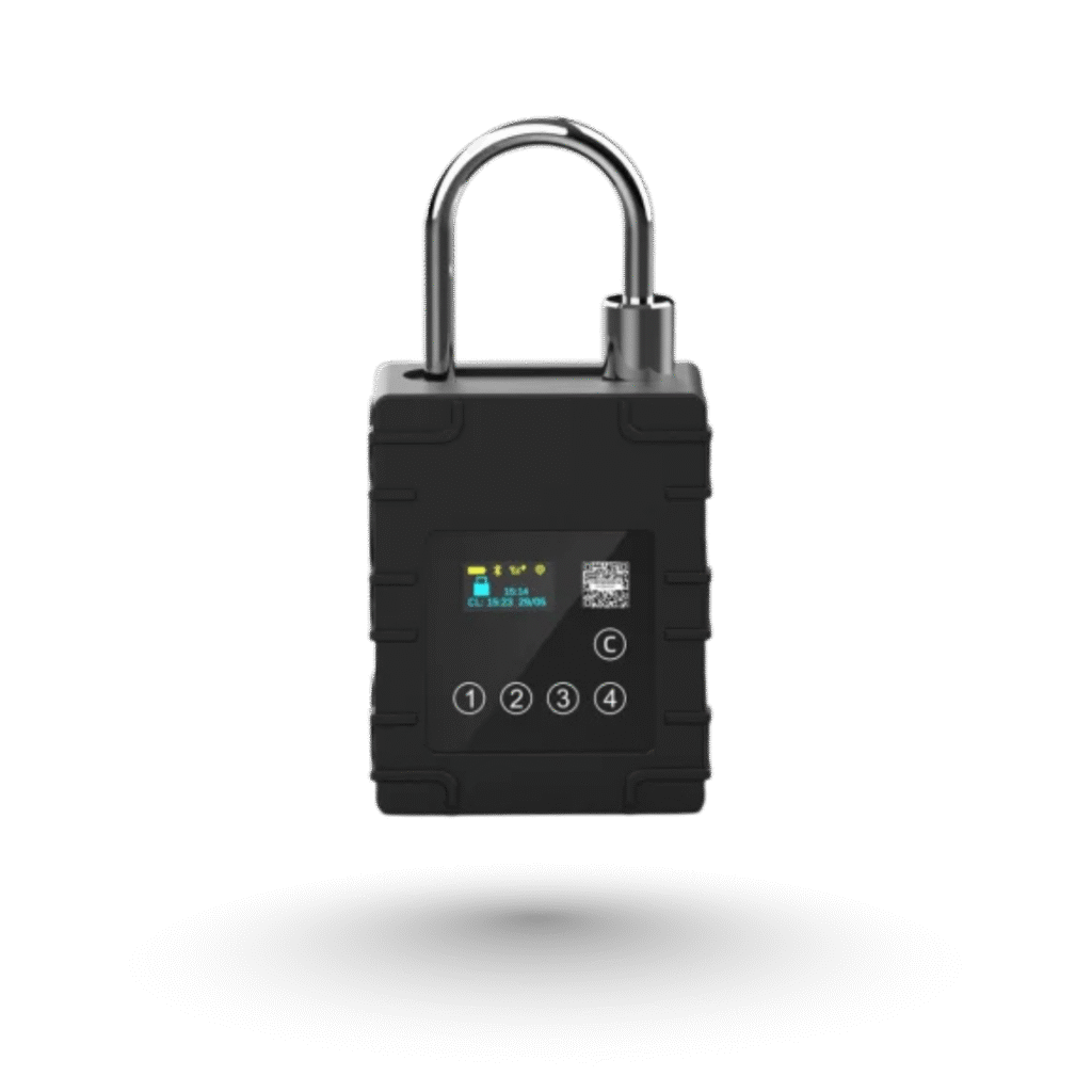The lock is paired with the tracking platform for live monitoring and alerts.